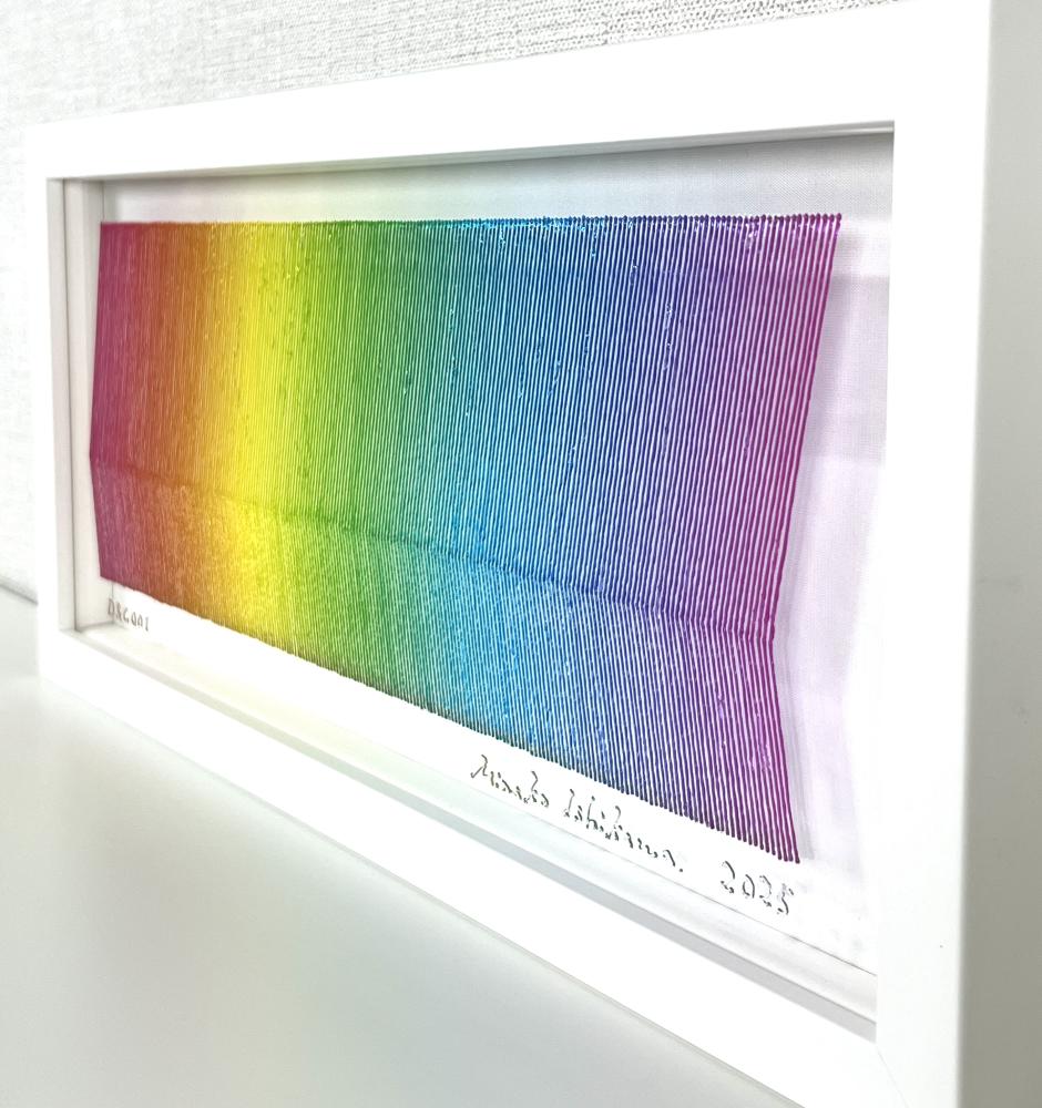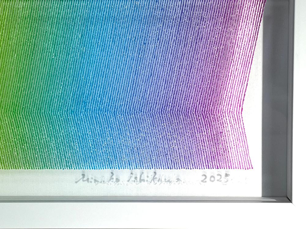The true beauty of Minako Ishikawa's work is that the lines are drawn with a single thin acrylic stroke, which is arranged among thousands while subtly changing the color scheme.
