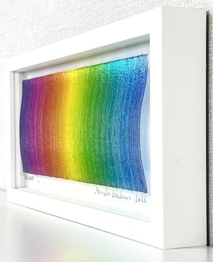 If you think that she paints her work with the colors of the rainbow on a transparent acrylic board, she will change it freely, like drawing with blue on a white canvas, and will attract viewers with her gradations.