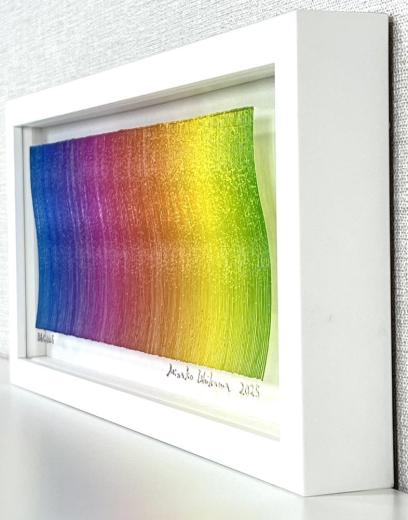 If you think that she paints her work with the colors of the rainbow on a transparent acrylic board, she will change it freely, like drawing with blue on a white canvas, and will attract viewers with her gradations.
