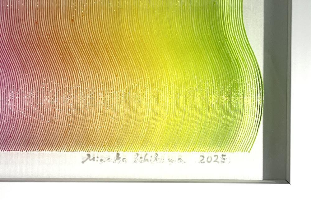 The true beauty of Minako Ishikawa's work is that the lines are drawn with a single thin acrylic stroke, which is arranged among thousands while subtly changing the color scheme.