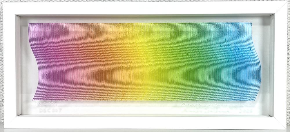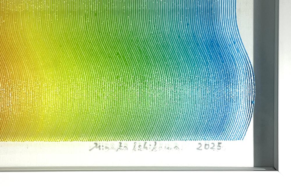 The true beauty of Minako Ishikawa's work is that the lines are drawn with a single thin acrylic stroke, which is arranged among thousands while subtly changing the color scheme.