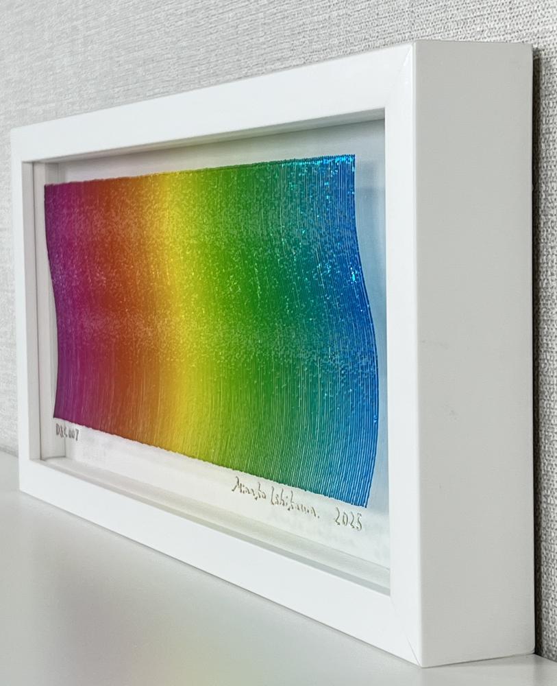 If you think that she paints her work with the colors of the rainbow on a transparent acrylic board, she will change it freely, like drawing with blue on a white canvas, and will attract viewers with her gradations.