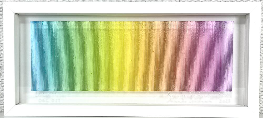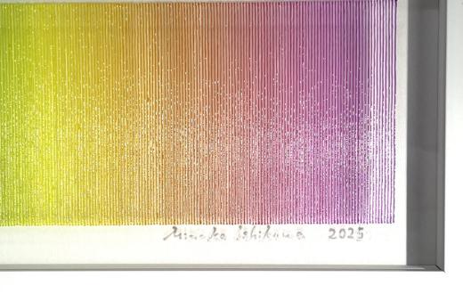 The true beauty of Minako Ishikawa's work is that the lines are drawn with a single thin acrylic stroke, which is arranged among thousands while subtly changing the color scheme.