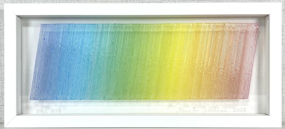 The true beauty of Minako Ishikawa's work is that the lines are drawn with a single thin acrylic stroke, which is arranged among thousands while subtly changing the color scheme.