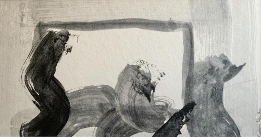 書道の美と技法を現代アートのなかへ新鮮な角度で吹き込む活動をしている、開田氏。墨汁と紙が引き起こす偶然性を援用しながら自らのイマジネーションを、作為と無作為のフュージョンという創造に結びつける、そんなゾクゾクする新しい「書」の魅力を盛んに発信しており、これまで「書」のジャンルに馴染みのなかった人々からも注目を集めています。