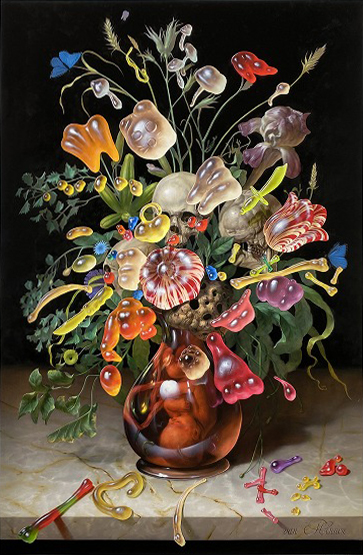 古典絵画の構図や技法を参照しつつ、肉体を過剰に変形・融合させることで、理想化された美やヒューマニズムへの違和感を露わにする。滑らかな肌理、強烈な色彩、グロテスクな形態が緊張関係を保ちながら共存し、絵画がもつ欲望、暴力性、ユーモアを鋭く浮かび上がらせる表現が特徴。デジタル時代における身体表象やアイデンティティの不安定さを、絵画というメディアで更新し続けている。