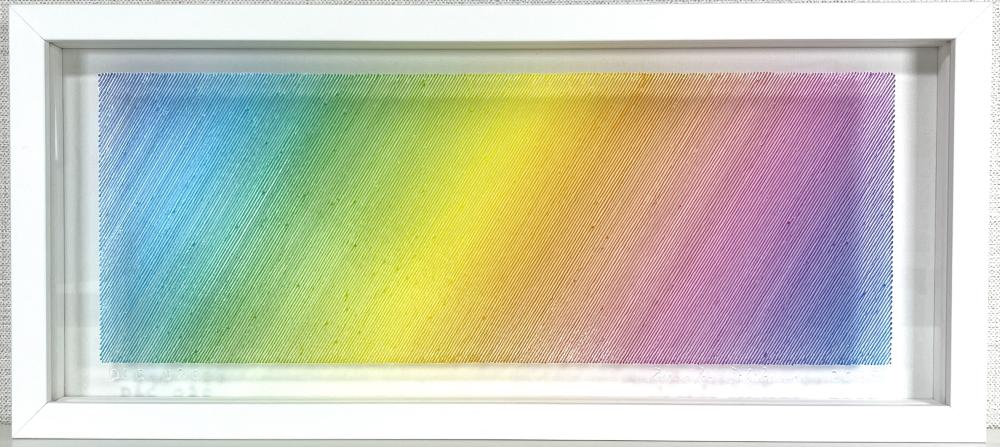 The true beauty of Minako Ishikawa's work is that the lines are drawn with a single thin acrylic stroke, which is arranged among thousands while subtly changing the color scheme.