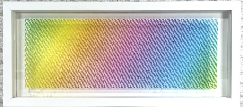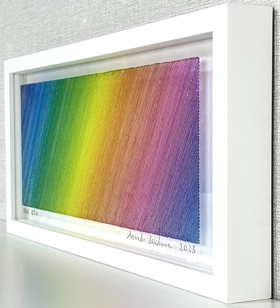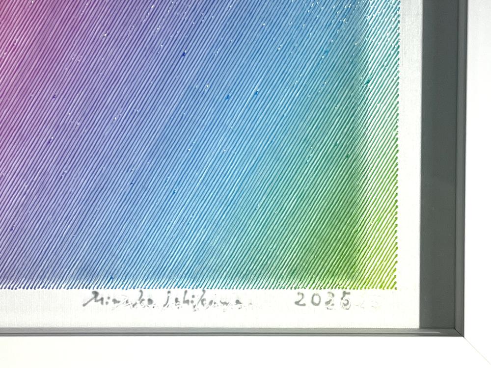 The true beauty of Minako Ishikawa's work is that the lines are drawn with a single thin acrylic stroke, which is arranged among thousands while subtly changing the color scheme.