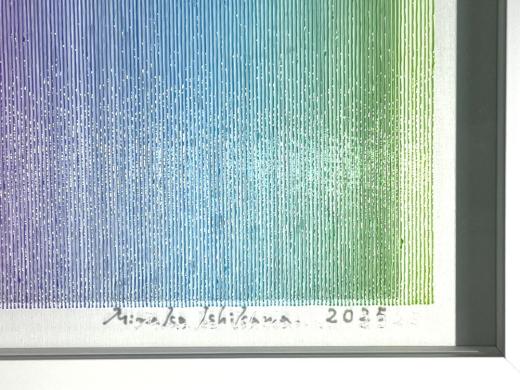 The true beauty of Minako Ishikawa's work is that the lines are drawn with a single thin acrylic stroke, which is arranged among thousands while subtly changing the color scheme.