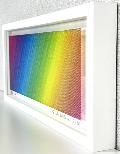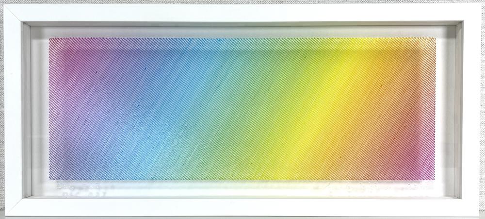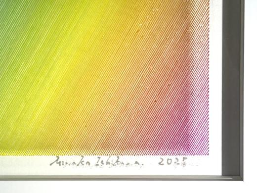 The true beauty of Minako Ishikawa's work is that the lines are drawn with a single thin acrylic stroke, which is arranged among thousands while subtly changing the color scheme.