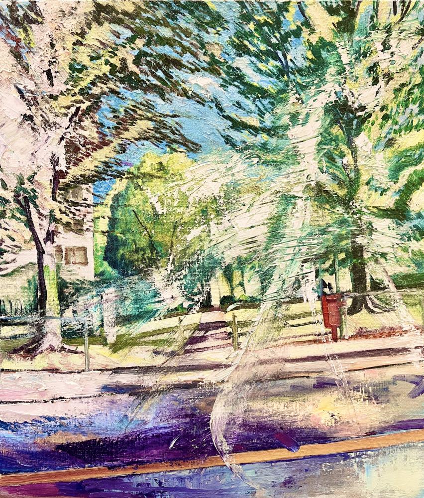 モチーフ選びは、輪郭を借りるだけで特別に何かを表そうとか意味を持たせることはしたくないと思ったのだ。なぜそうなったかというと、自分自身がその様な描き方を望まなかったからだ。直球で何かものに向かい、直接的に風景やら日常の一場面を描く方がそれこそ自分らしいと思った。しかし、幼少期にポールセザンヌの絵を見て「特別だ」と強く感じた。ただの風景画や人物を描く画家にはなりたくないと思った。今でも現代の絵を描こうと画家の探求は続いている。”