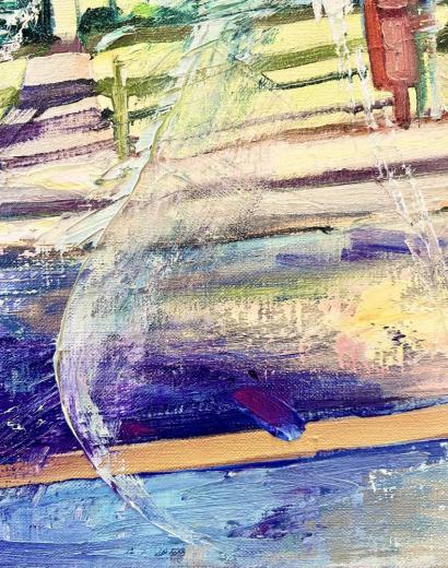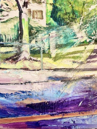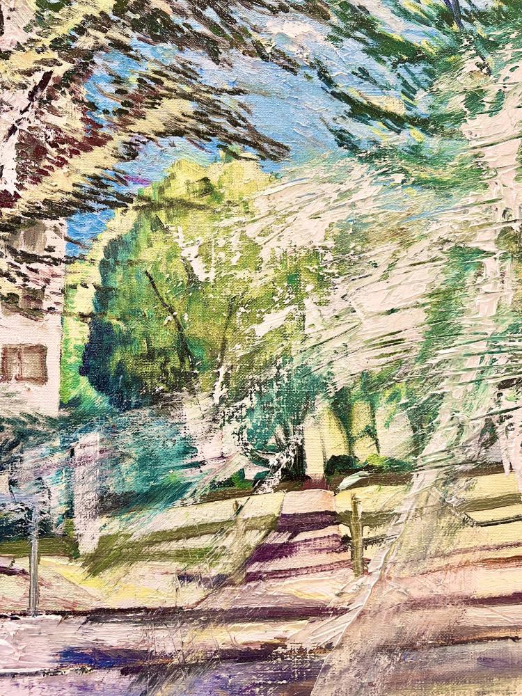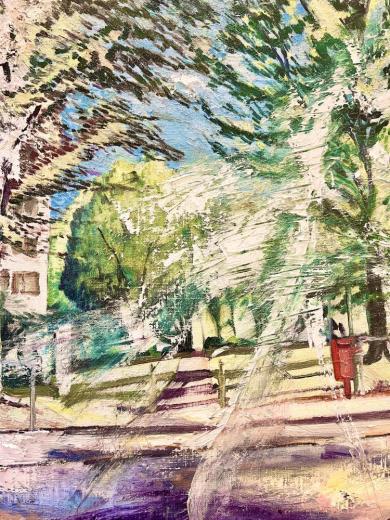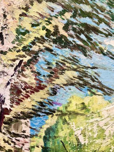 作品のモチーフは、実際に自分の目で見た風景を収めた写真たちから選びます。描きたいと思う風景を描きたいように描く。そうやって1枚の絵が完成した時私の内に生まれるものは、疲労感と充足感、そして何よりも、もっと絵を描きたいという欲求です。私を制作へと突き動かすのは、この直感と欲求なのです。