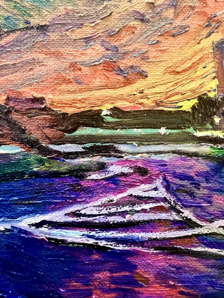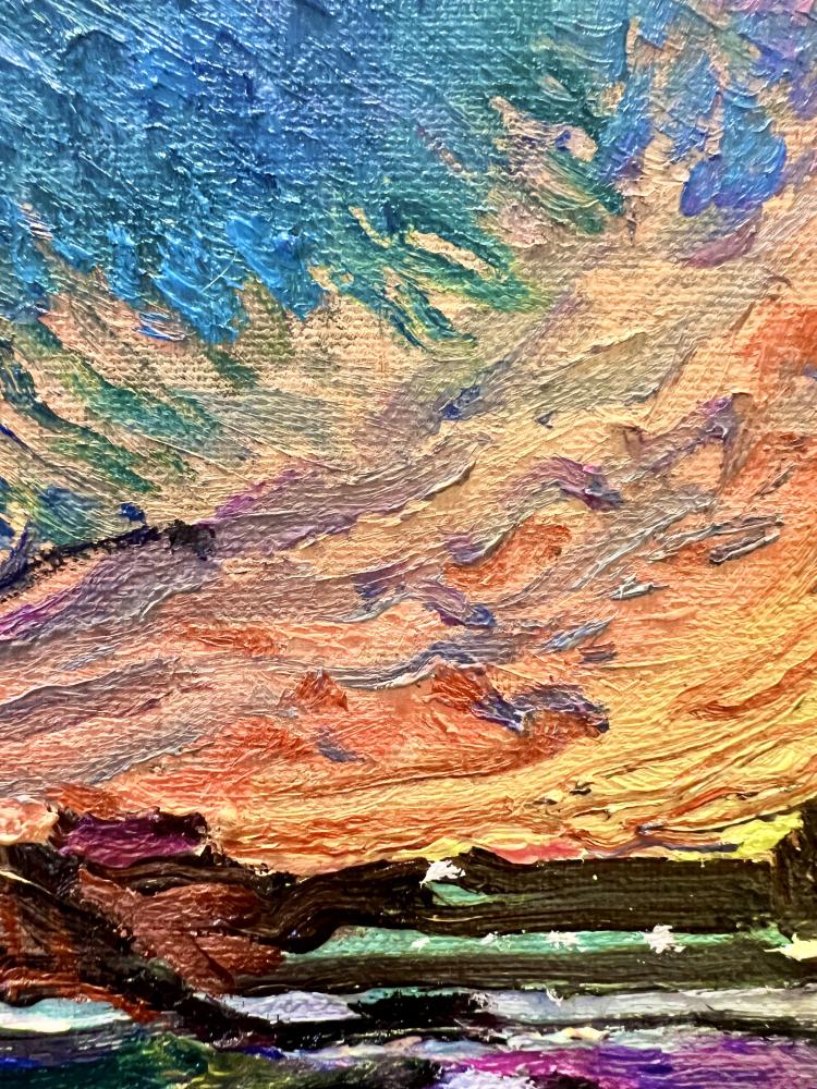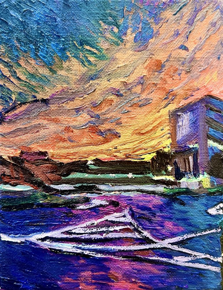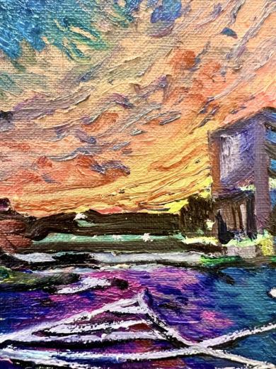 作品のモチーフは、実際に自分の目で見た風景を収めた写真たちから選びます。描きたいと思う風景を描きたいように描く。そうやって1枚の絵が完成した時私の内に生まれるものは、疲労感と充足感、そして何よりも、もっと絵を描きたいという欲求です。私を制作へと突き動かすのは、この直感と欲求なのです。