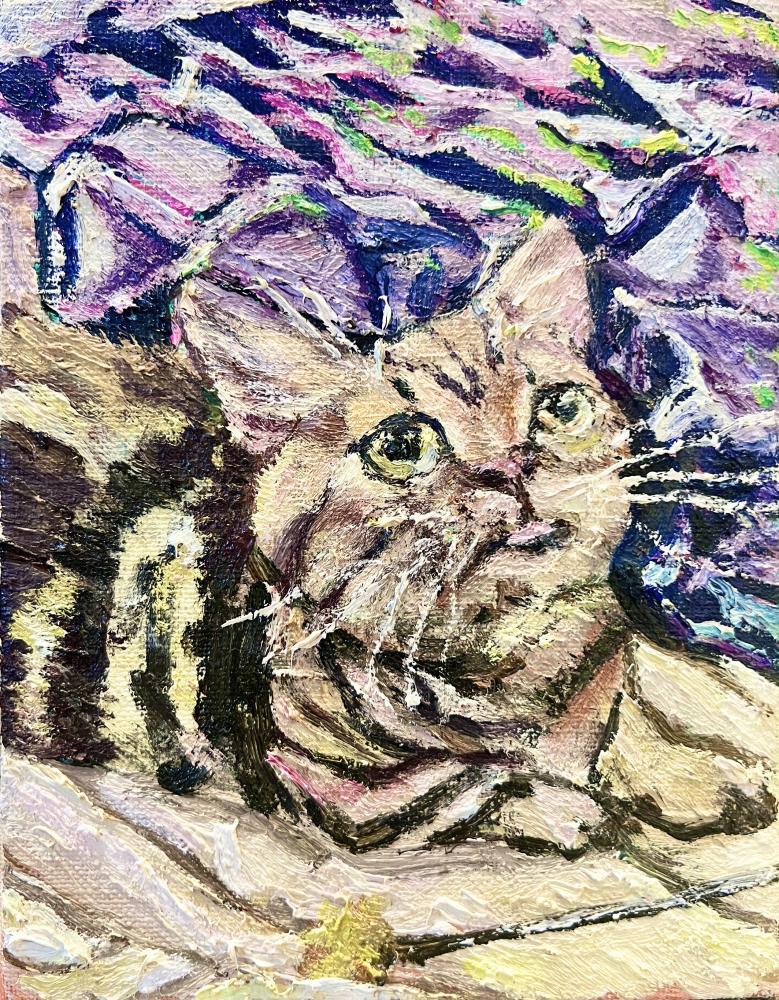 絵と向き合う時、私はただひたすらに自身の直感を信じます。気持ちいいと思う形や色、作品のモチーフさえも、全て直感で選び取るのです。