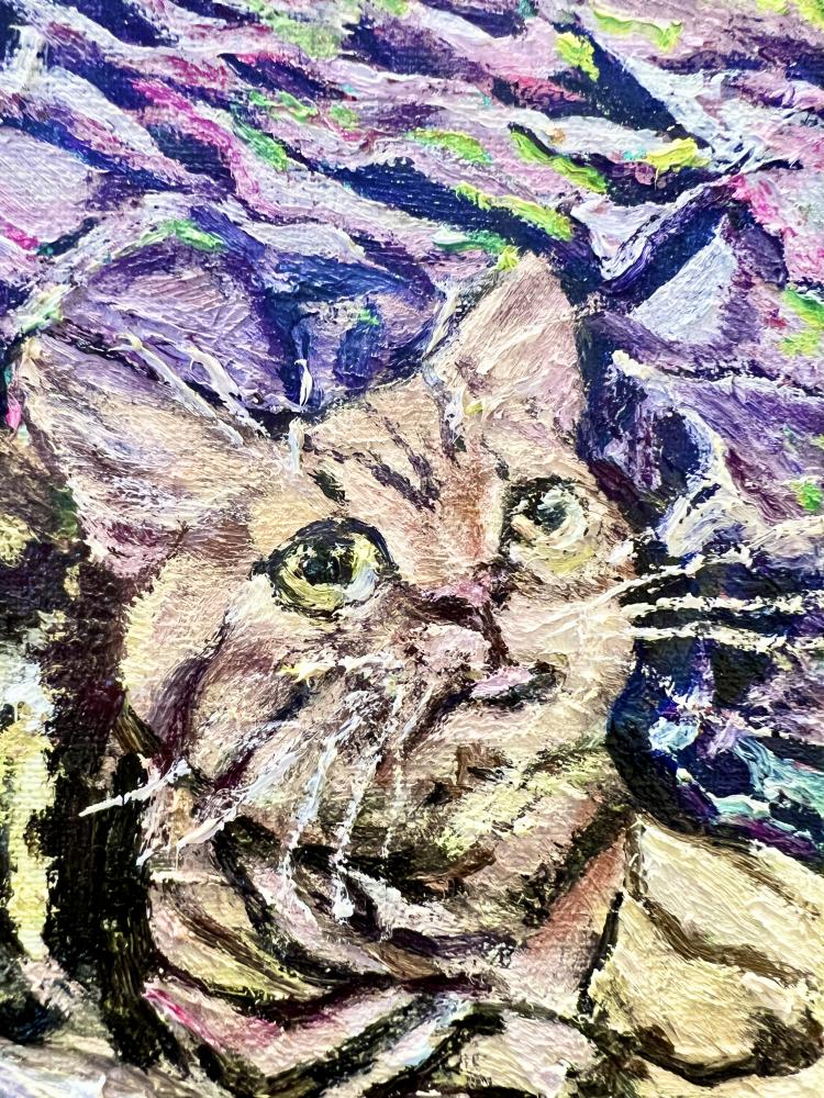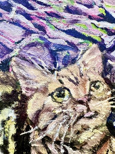 では、私の原動力が直感と欲求ならば、私が作品制作を通じて表現したいものは何なのでしょうか。自問自答する程に分からなくなりますが、一つ答えを出すとするならば、それは私自身の「魂」なのだと思います。人の気持ちや言葉は目に見えるものではありませんが、絵画という言語を通して私は自身の「魂」を鑑賞者へと訴えかけたいのです。
