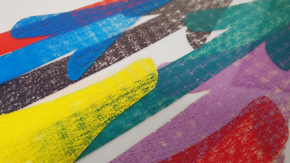 集合体としての言葉が持つ普遍的な意味の裏側に、十人十色の意識がひしめき、一つの価値観に縛られない現実があることを、アクリルを重ねた奥行きの中に描き出します。