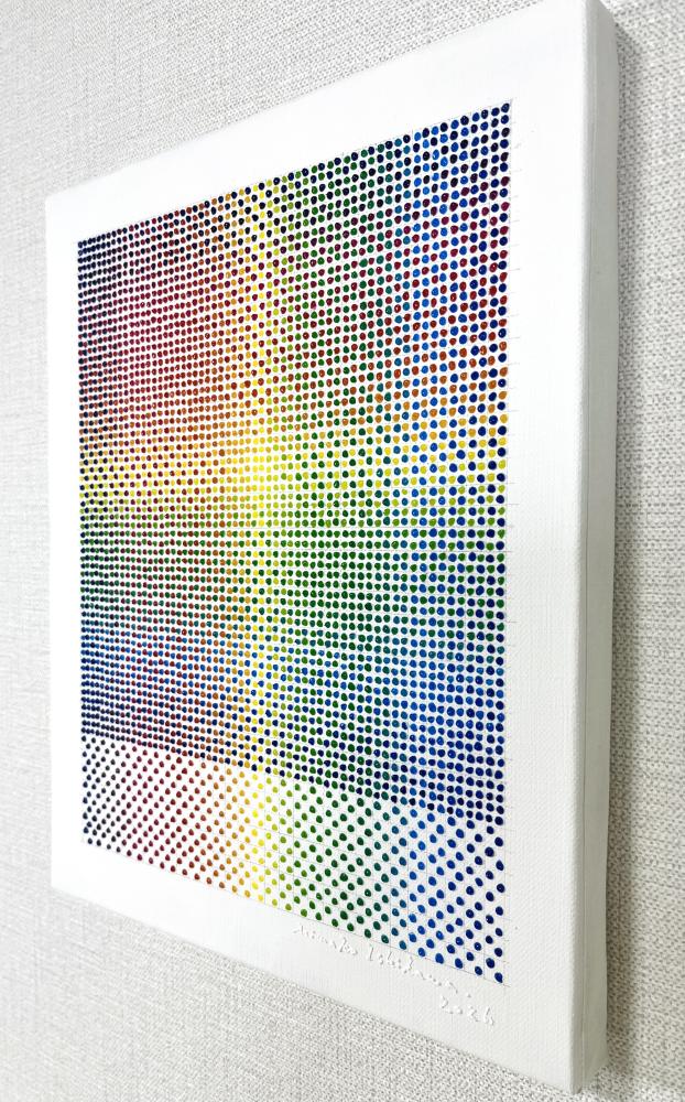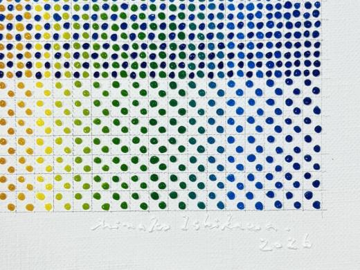 The true beauty of Minako Ishikawa's work is that the lines are drawn with a single thin acrylic stroke, which is arranged among thousands while subtly changing the color scheme.