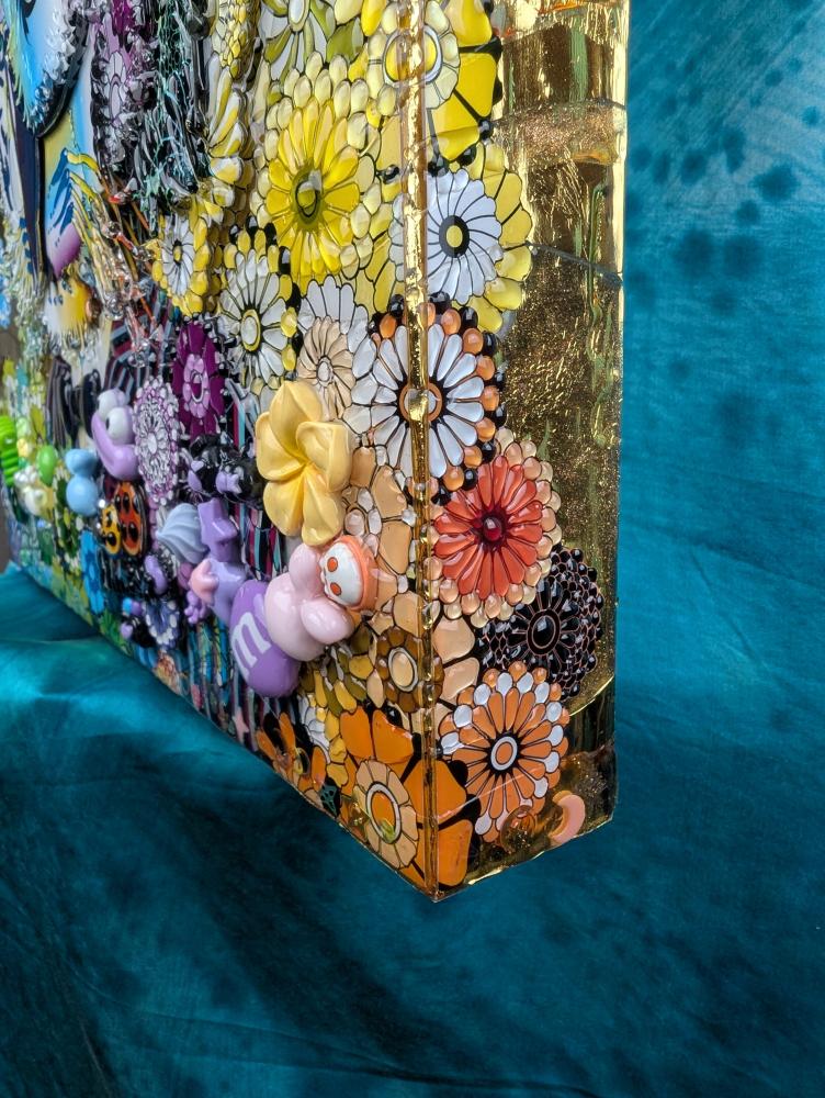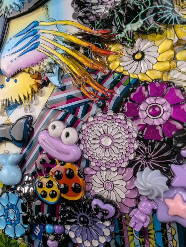 3D artworks produced by KAERU TSUKINO are born from the combination of various materials such as metal, using his original digital illustration as blueprint. Then they are layerd in coating acrylic transparent resin and finished with glitters and rhinestones.The appearance that different materials show their individual charm and create a unique world - it expresses the fusion of diversity and interculturalism in this world. Also, KAERU feels that the world we exist is composed of "invisible layers". This is the one of significant reasons for making multi-layerd works using transparent resin.The "invisible layers" is the fluctuation of various consciousness and emotions of living creatures that are silently piled up in the world regardless of awareness. We are living on the earth made of such unstable and invisible emotions. In a land dominated by thin emotions, people's souls are exhausted.