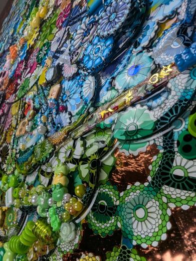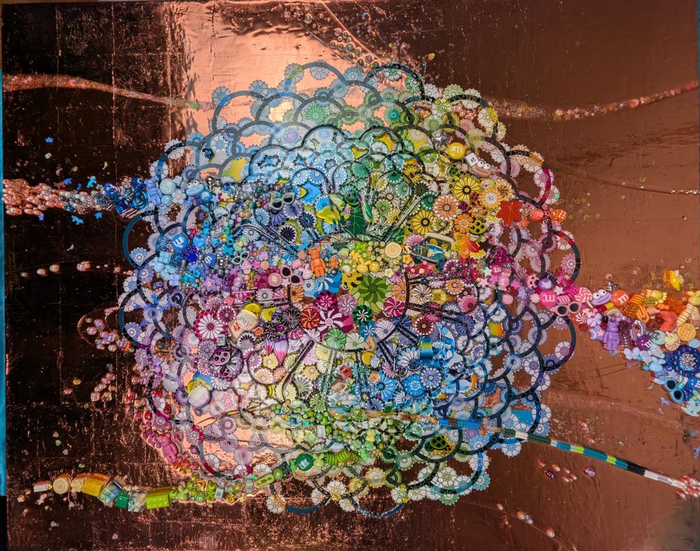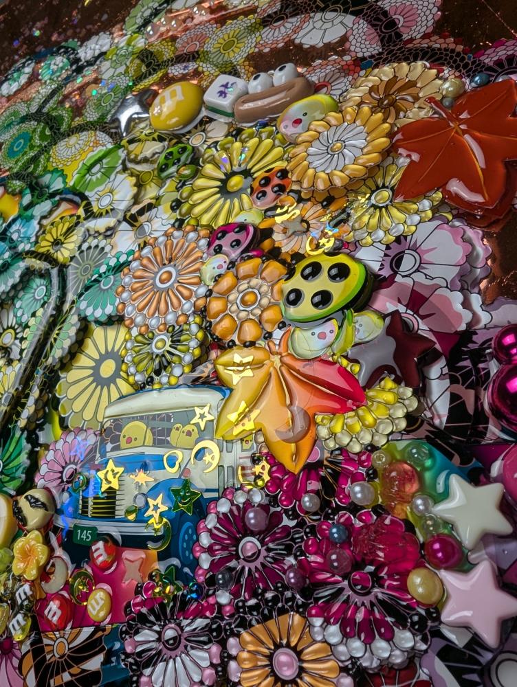 月乃カエルの作品は、透明樹脂を中心として、様々な素材で構成されたミクストメディア作品です。