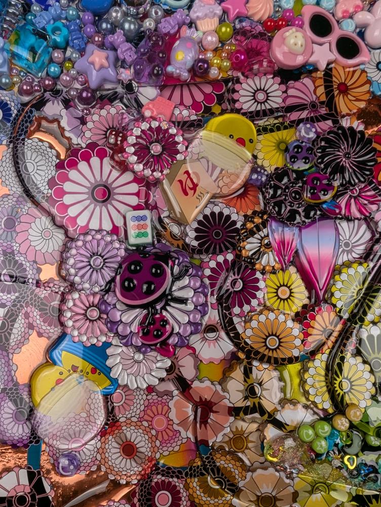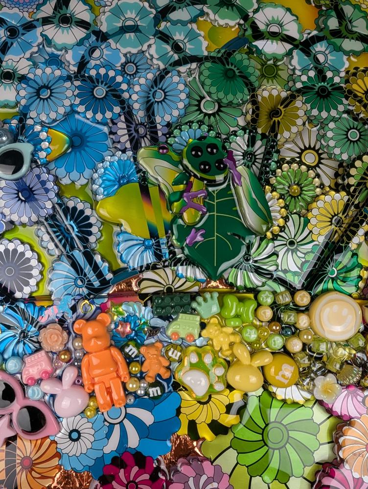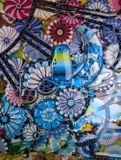 3D artworks produced by KAERU TSUKINO are born from the combination of various materials such as metal, using his original digital illustration as blueprint. Then they are layerd in coating acrylic transparent resin and finished with glitters and rhinestones.The appearance that different materials show their individual charm and create a unique world - it expresses the fusion of diversity and interculturalism in this world. Also, KAERU feels that the world we exist is composed of "invisible layers". This is the one of significant reasons for making multi-layerd works using transparent resin.The "invisible layers" is the fluctuation of various consciousness and emotions of living creatures that are silently piled up in the world regardless of awareness. We are living on the earth made of such unstable and invisible emotions. In a land dominated by thin emotions, people's souls are exhausted.