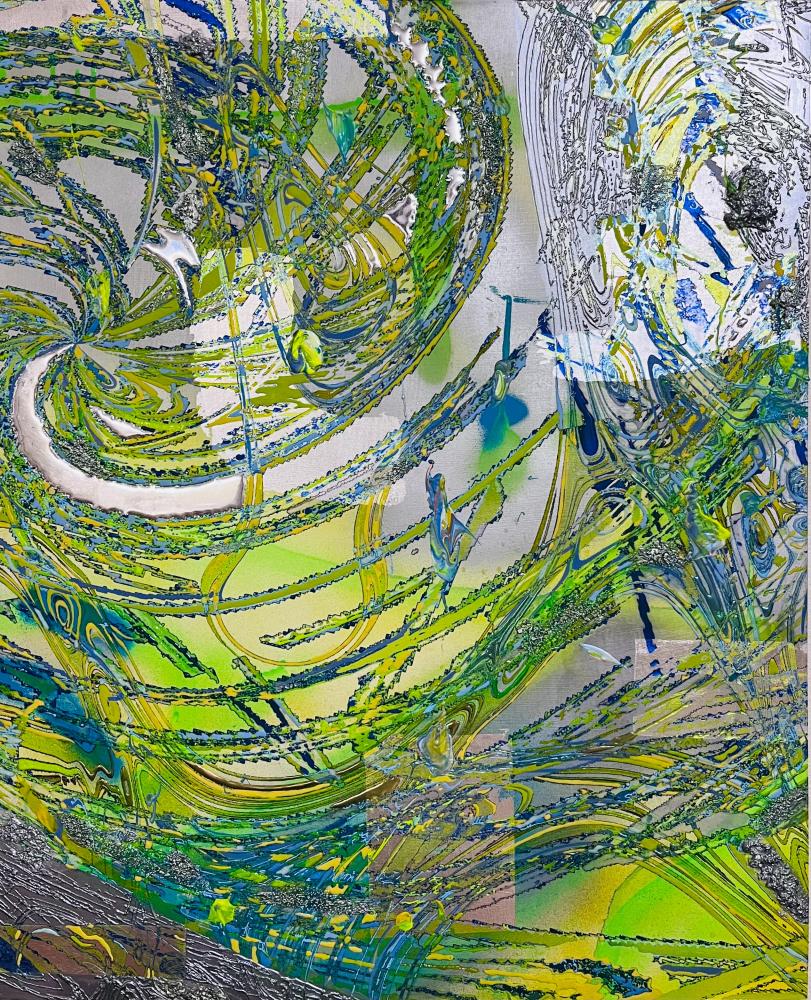 自身の実体験や思考・感情に紐付く写真・文字(フォント)・イラストレーション・ドローイング等をベースに加工と編集を繰り返し、具象的な存在を抽象化し銀箔などの上にUVインクジェットという印刷技術を用い印刷、さまざまなマテリアルを用い、ペイントを加えるなどして自分の手で上書きをする。