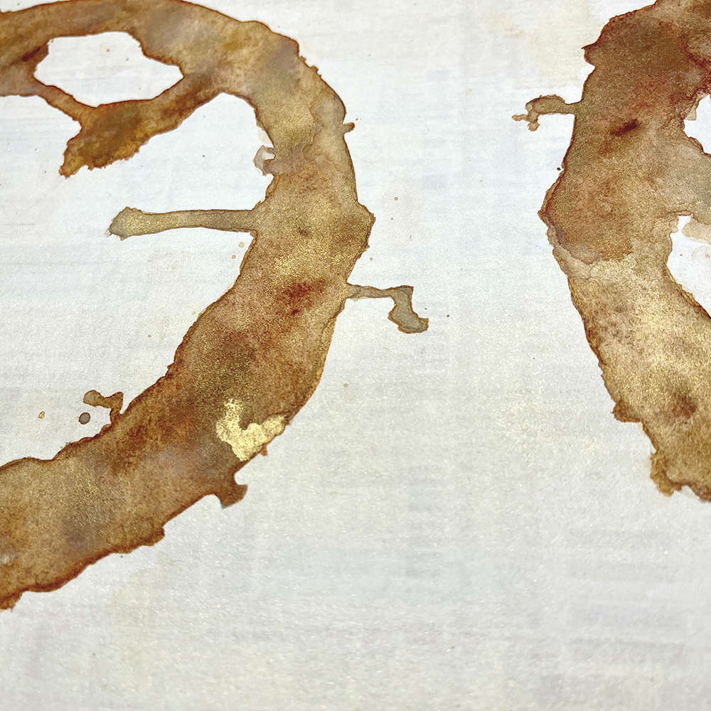 偶然出来る滲み、垂れ、飛沫、溜まりはこの世界と同じ様に硬くて柔軟、揺らぎ、光を反射して煌めく。