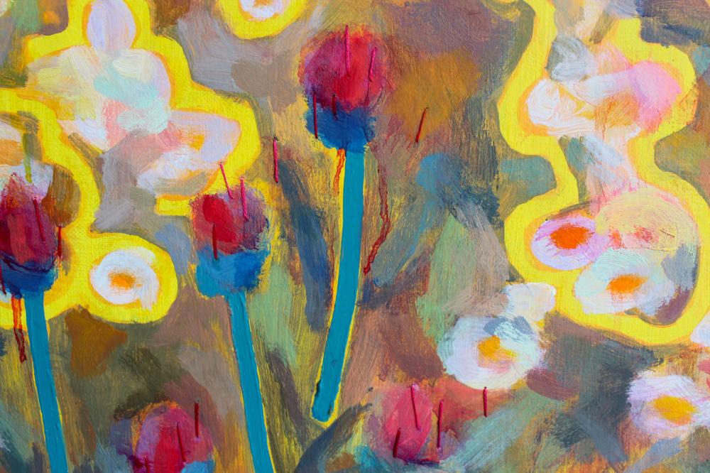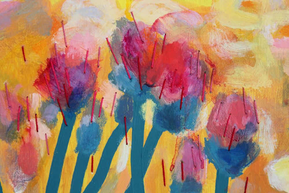 oil on canvas, embroidery