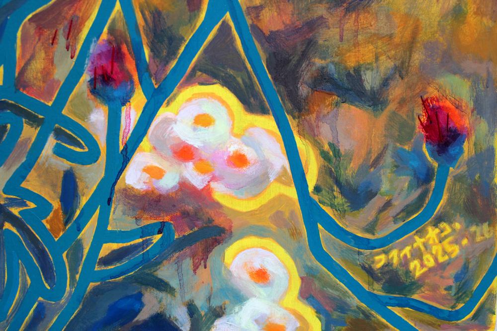 Naoko Fukui aoko Fukui is one of highly recommended artists introduced by Gallery TAGBOAT.She is distinguished for brightly colored painting and accessories decorated with shiny materials such as beads and spangles.One of her installations was awarded by Taro Okamoto Award of Contemporary Art, which she decorates the space and makes it into a magical room.With decorations and paintings, and the combination of plane with space, she presented viewers with a more familiar way to enjoy art.Her colorful outlines which heighten the decorations and the plane surface are recognized as her painting style.On the other hand, we could still find the hidden dignified strength in her painting, without failing to capture any twinkling of the moment.She puts all of her personal life experiences and memories to her artistic creation.Memories from the nature, memories from her grand mother who has a talent for stitching, memories from traveling and bright memories of touching moments.Not only paints on canvas, she has been using every conceivable materials to spell her memories on, such as cloth, beads, wood, pottery and so forth.She endeavors to conceal her memories in a singular space.