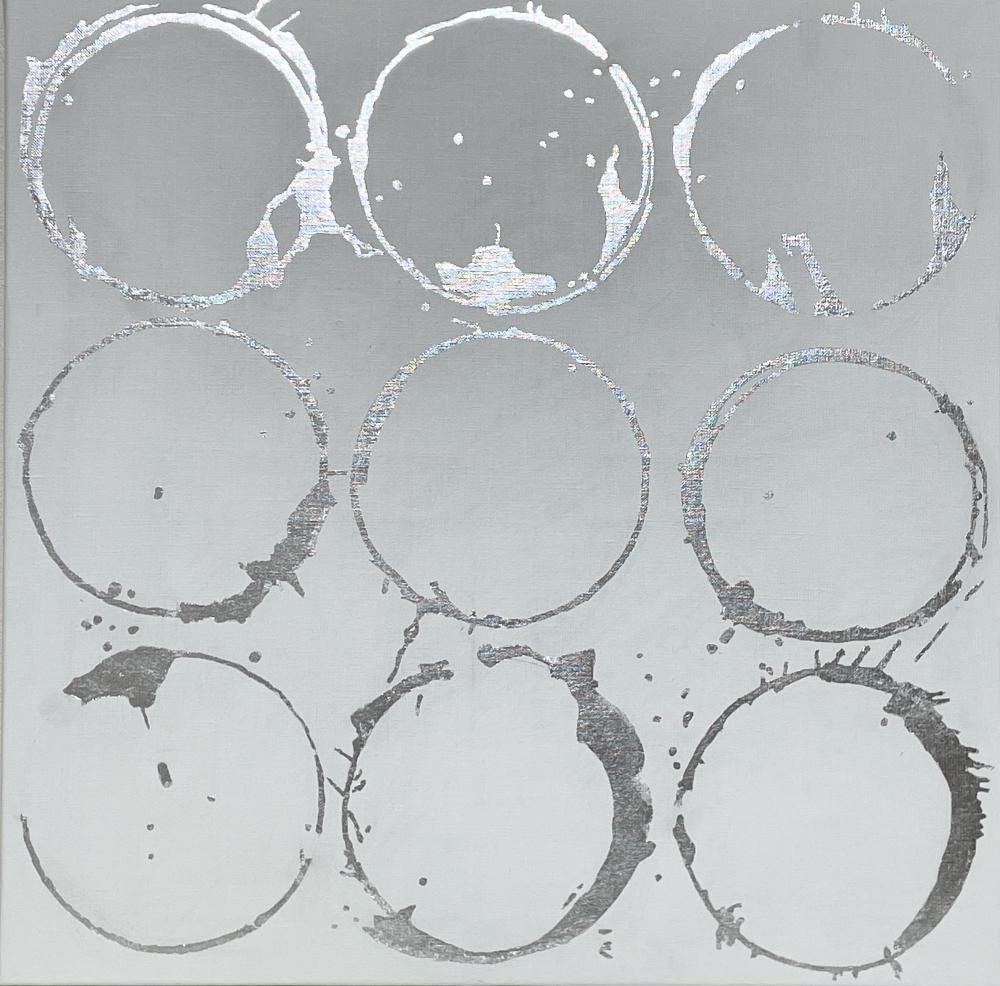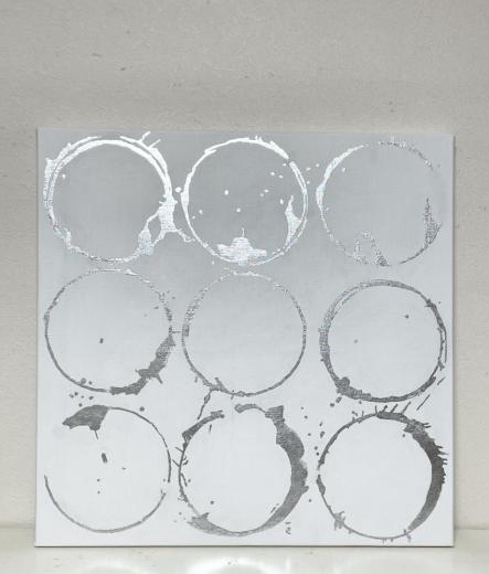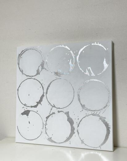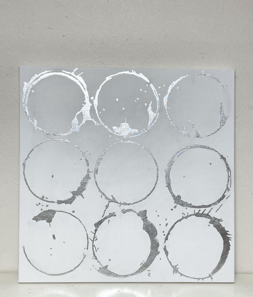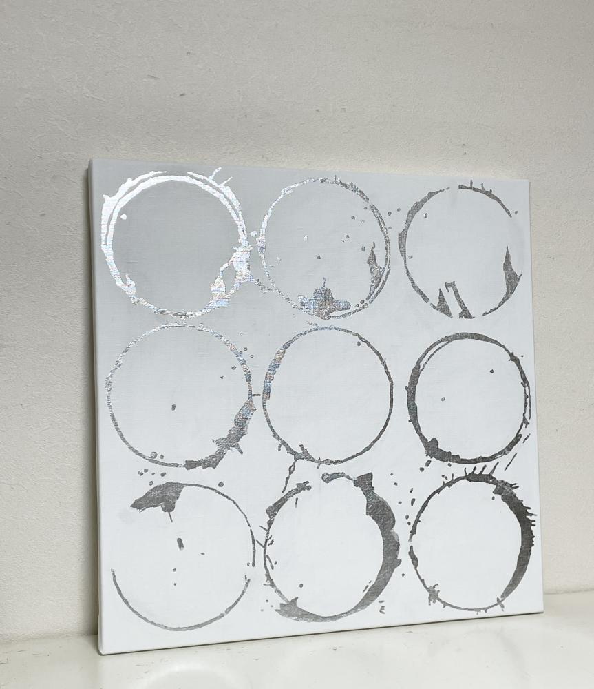 キャンバスに箔だけで円相の曼荼羅を描きました。アルミ箔使用なので変色しにくいです。