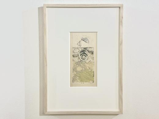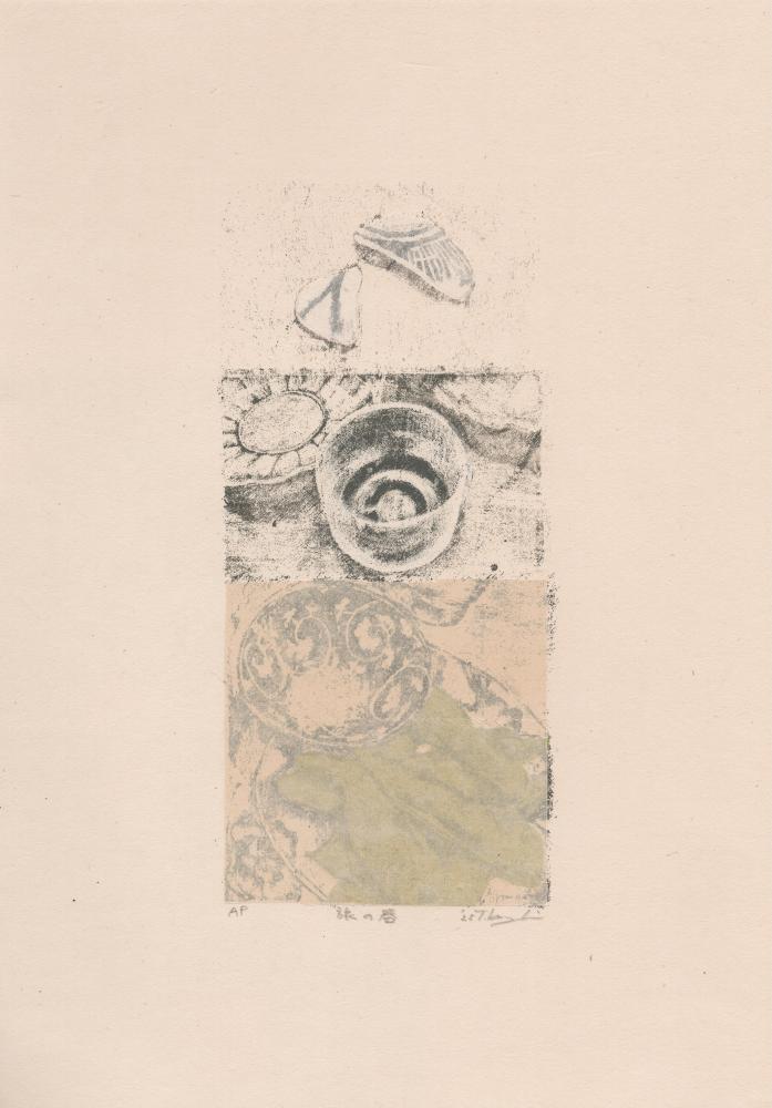 本作は、器シリーズから派生したシリーズの一作。彼女が出会った器と色を写し取った、謄写版アートならではの繊細な味わいが魅力的です。