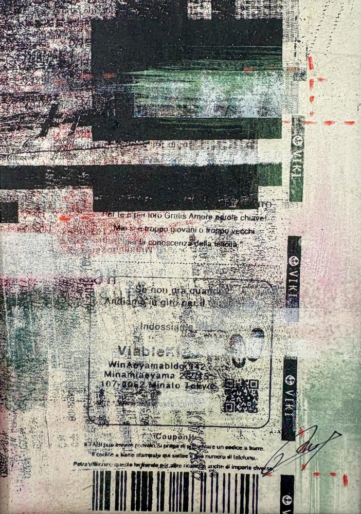 本シリーズ[Second skin/ セカンドスキン] はレシートをコピーし、コピーしたものを再度コピーする行為を重ね、イメージが崩れた図像をシルクスクリーンで施した作品です。