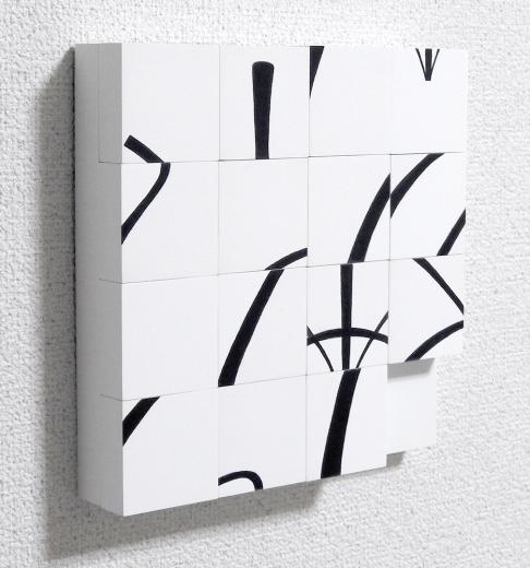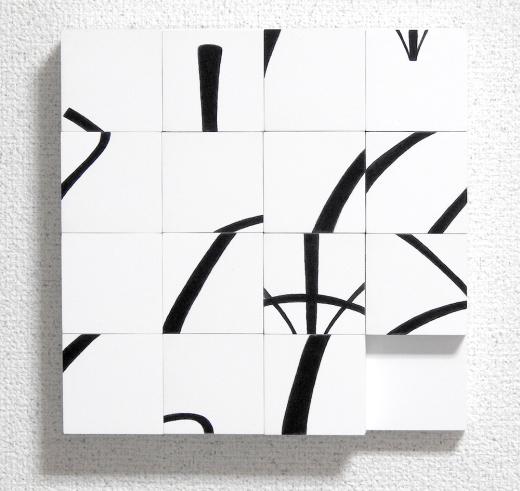 スライドパズルを題材にしました。スライドパズルでは元画像が解体・抽象化された状態で提示されます。その行為は絵画の解体のラディカルな実践とも読み解けるかもしれません。15のピースを並び替えると食いしん坊なオバケが現われます。