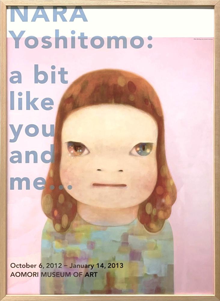 This is an exhibition poster by Yoshitomo Nara, created for his solo exhibition “Yoshitomo Nara: a bit like you and me…” held at the Aomori Museum of Art from 2012 to 2013. The image features one of his iconic motifs, Miss Spring.