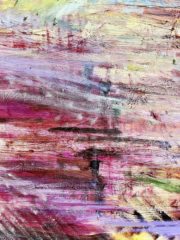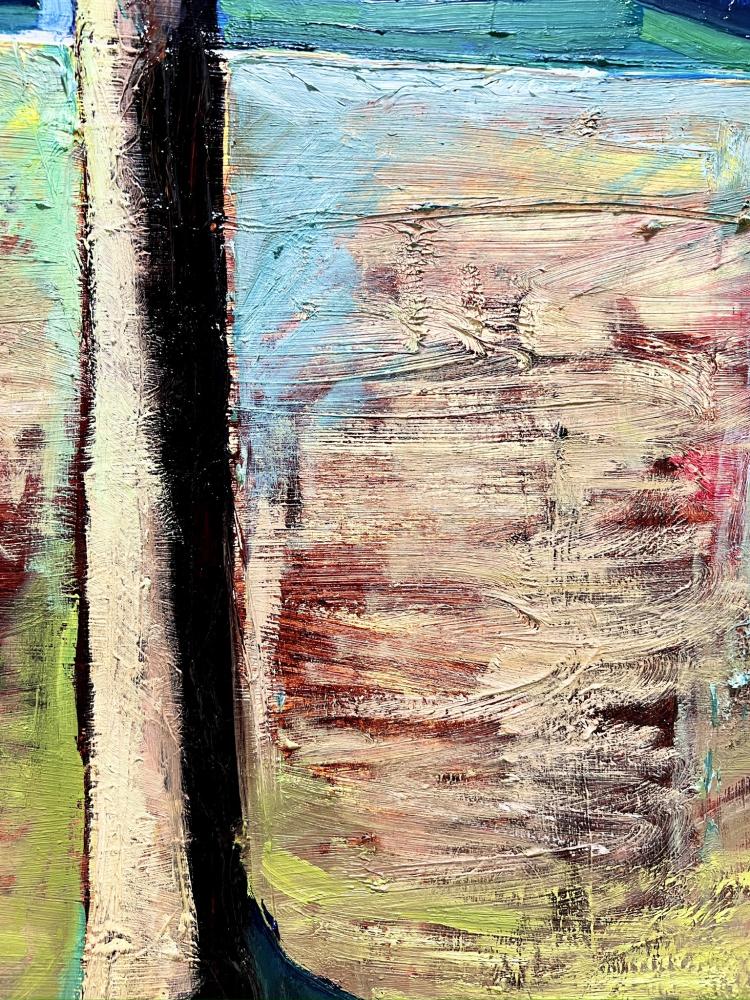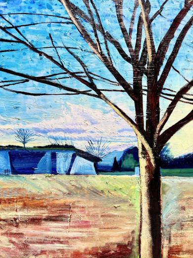 作品のモチーフは、実際に自分の目で見た風景を収めた写真たちから選びます。描きたいと思う風景を描きたいように描く。そうやって1枚の絵が完成した時私の内に生まれるものは、疲労感と充足感、そして何よりも、もっと絵を描きたいという欲求です。私を制作へと突き動かすのは、この直感と欲求なのです。