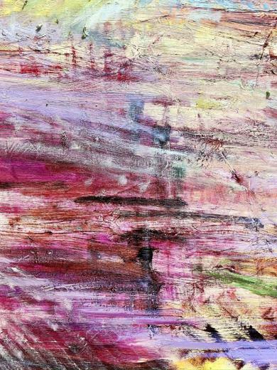 ある人には、ノイズになるでしょう。またある人には、心地よいものになるでしょう。私は色々なことを想像し、時に不安を抱きながら、それでも自分が信じた方向へと突き進み絵を完成させる他にありません。あの時の記憶、あの時の感覚、あの時の時間は、今この時の一瞬一瞬であり刹那的なものであります。しかし、私はその一瞬一瞬を捉えようとして、心情を揺れ動かしながら絵を描いていくのです。"
