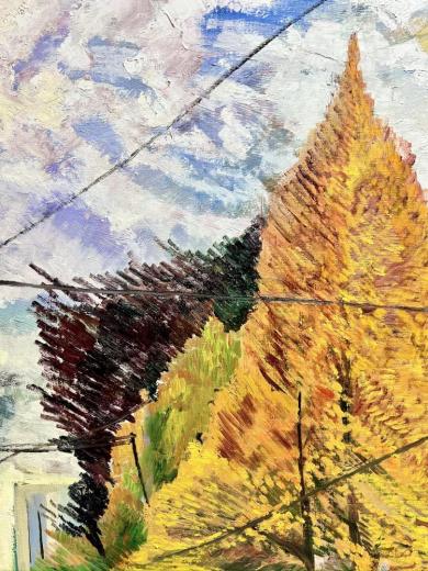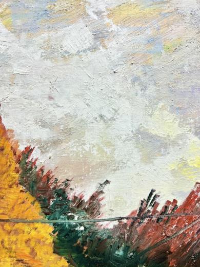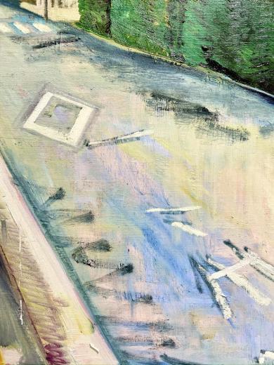 作品のモチーフは、実際に自分の目で見た風景を収めた写真たちから選びます。描きたいと思う風景を描きたいように描く。そうやって1枚の絵が完成した時私の内に生まれるものは、疲労感と充足感、そして何よりも、もっと絵を描きたいという欲求です。私を制作へと突き動かすのは、この直感と欲求なのです。