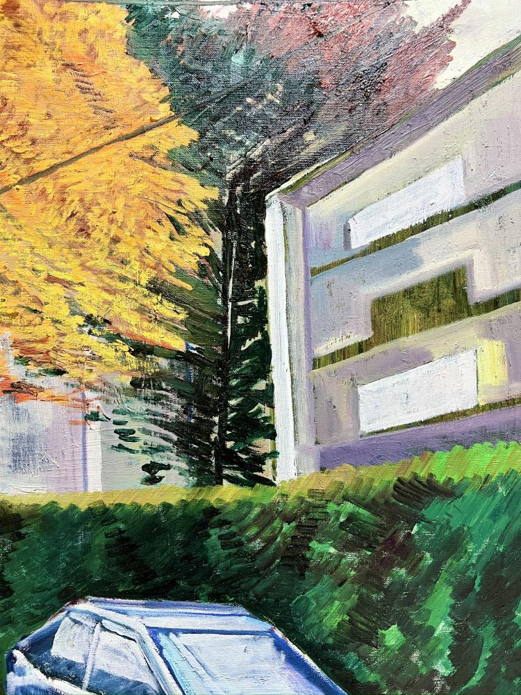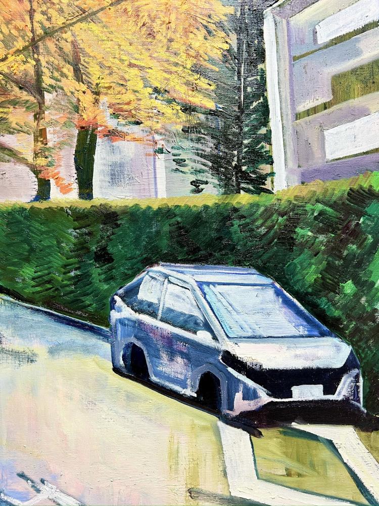 モチーフ選びは、輪郭を借りるだけで特別に何かを表そうとか意味を持たせることはしたくないと思ったのだ。なぜそうなったかというと、自分自身がその様な描き方を望まなかったからだ。直球で何かものに向かい、直接的に風景やら日常の一場面を描く方がそれこそ自分らしいと思った。しかし、幼少期にポールセザンヌの絵を見て「特別だ」と強く感じた。ただの風景画や人物を描く画家にはなりたくないと思った。今でも現代の絵を描こうと画家の探求は続いている。”