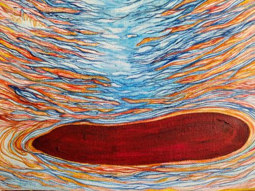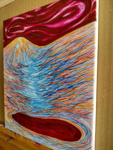 キャンバスに水彩、油彩