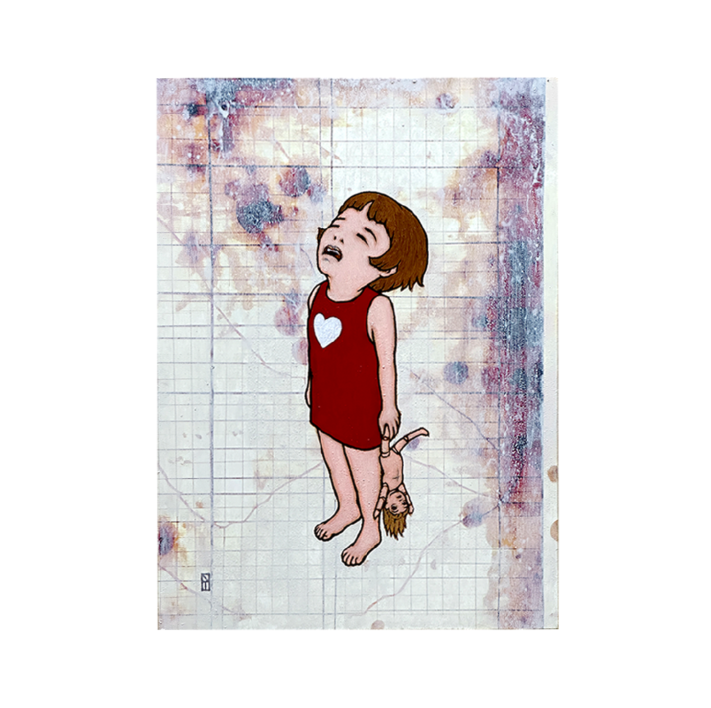 アンタカンタは、90年代に現代美術のアーティストとして活動していましたが、まったく食べていけなくなってしまい、どん底から起業しました。会社を成長させていく中で経験した 思考が現実になっていく世界。その世界を作品のテーマとして、2015年からアート活動を再開しました。モチーフとして登場する4.5頭身の女の子は、マリアカンナと言う名前で、教科書の隅に描き続けてきた空想上のモデルです。幼く小さく弱いマリアカンナとポポが、固定概念を振り払い、思考が現実になる世界を旅する姿を絵画作品にしています。