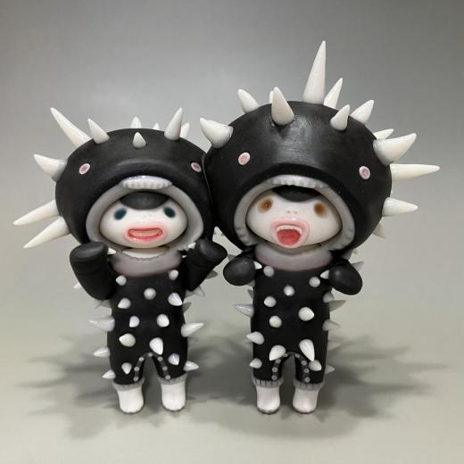 樹脂粘土、アクリル絵具、ニス,レジン