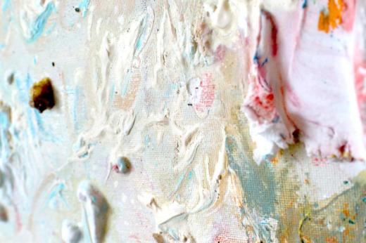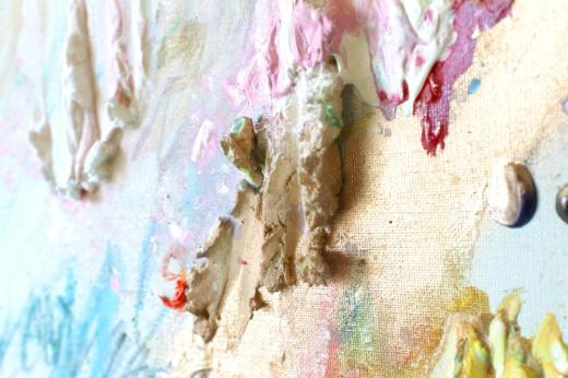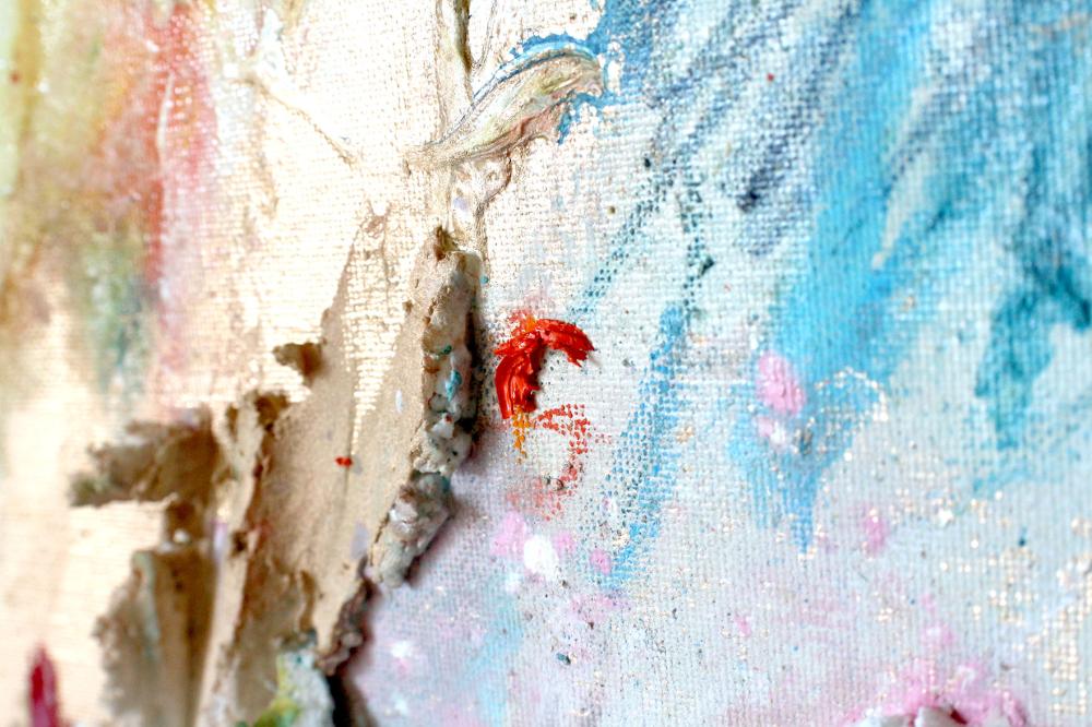 アクリル絵の具、メッキ調顔料、板キャンバス、あの時の花