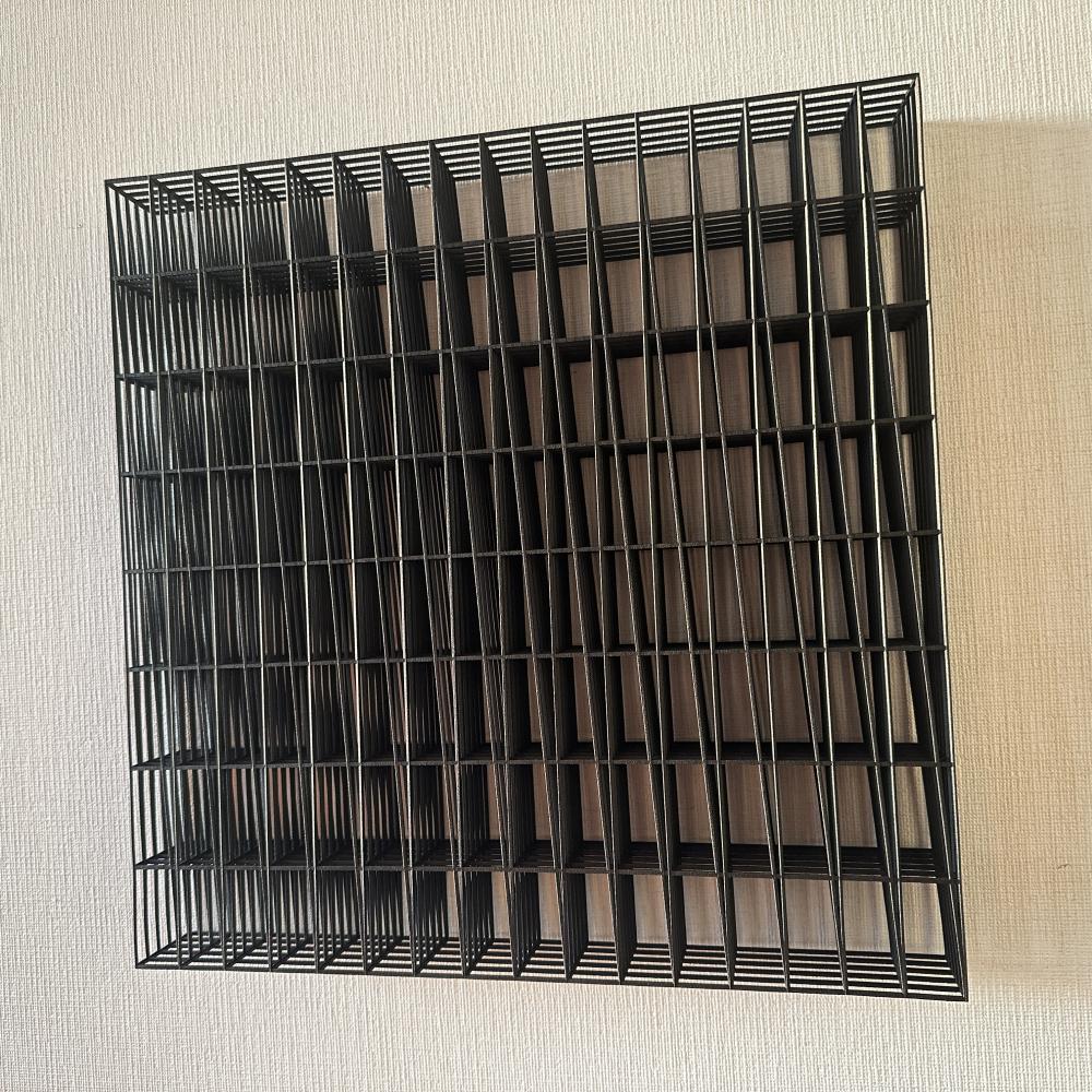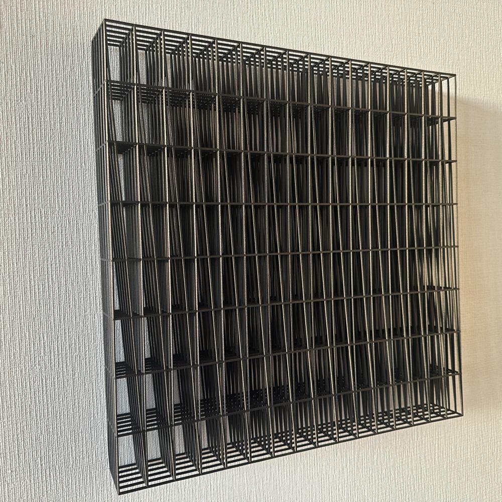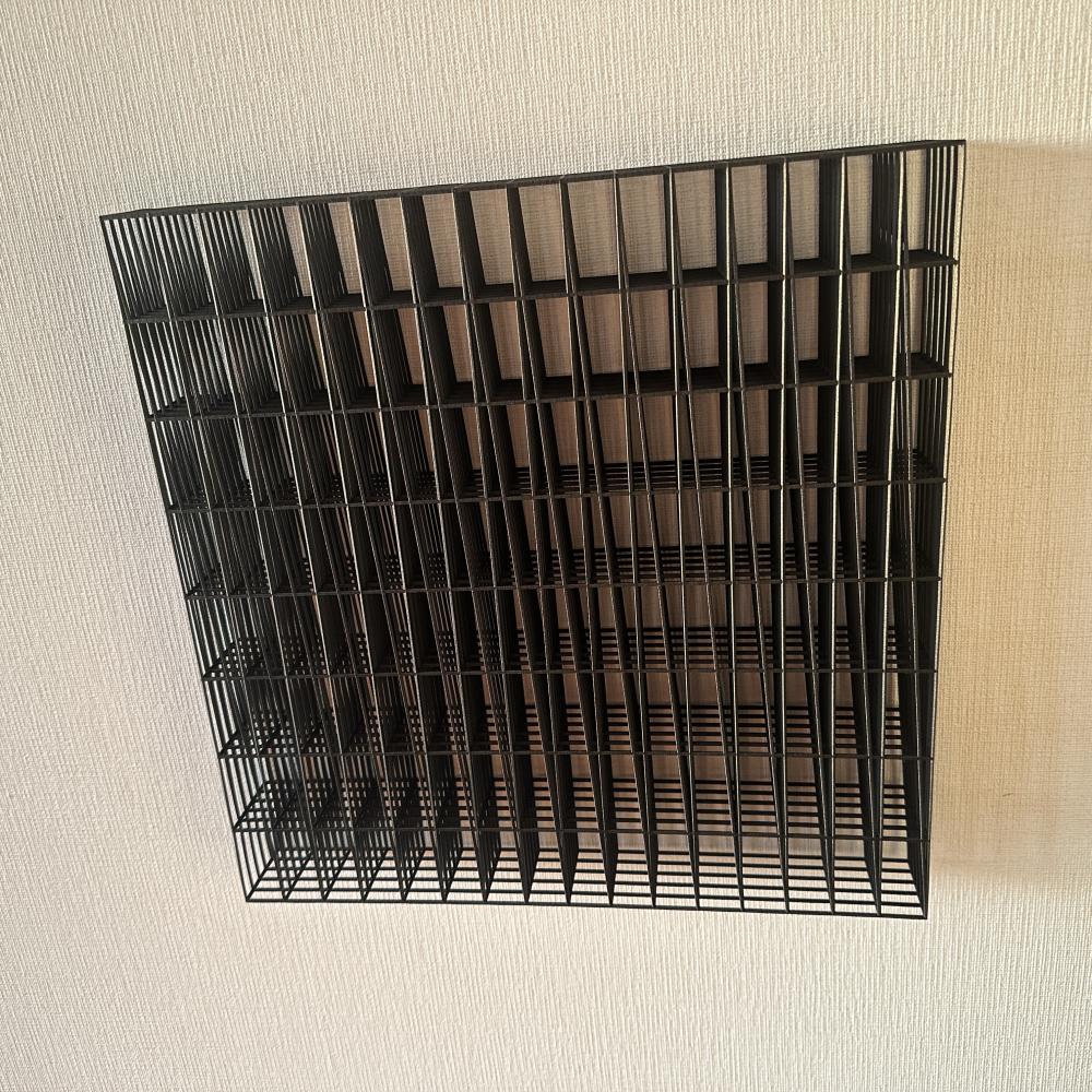 錯視、遠近法、モアレなどの視覚的構造を用いながら、見ることの仕組みそのものを攪乱し、存在と非存在、現実と虚構、構築と想像のあいだに潜む曖昧な境界を浮かび上がらせる。彼の作品は、私たちが世界を理解するために拠って立つ「構造」を可視化し、それを問い直す装置として機能する。