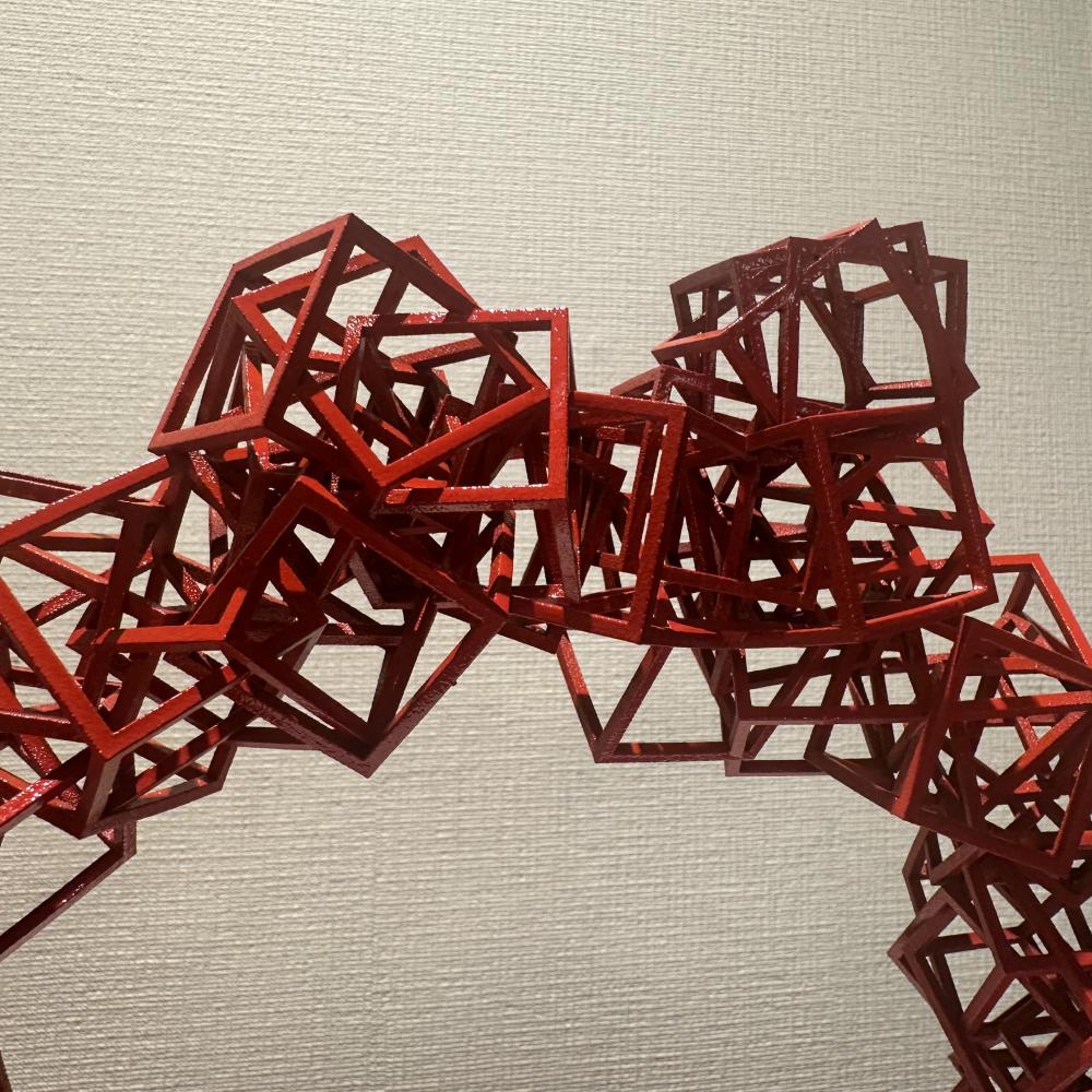 錯視、遠近法、モアレなどの視覚的構造を用いながら、見ることの仕組みそのものを攪乱し、存在と非存在、現実と虚構、構築と想像のあいだに潜む曖昧な境界を浮かび上がらせる。彼の作品は、私たちが世界を理解するために拠って立つ「構造」を可視化し、それを問い直す装置として機能する。
