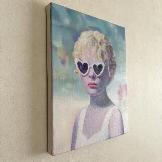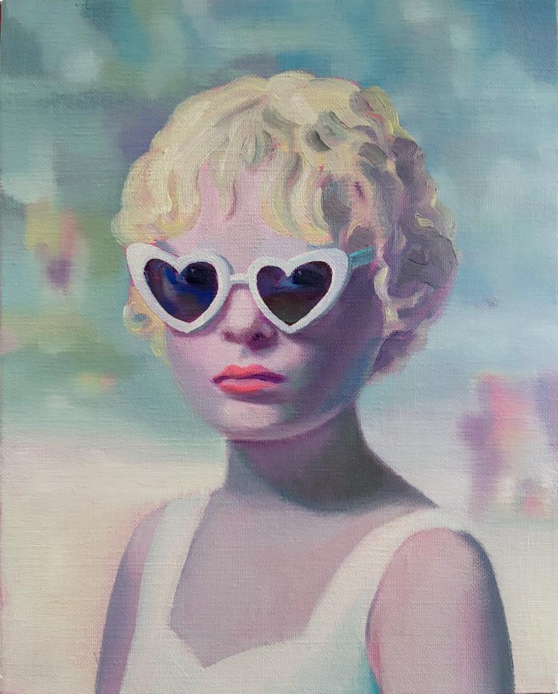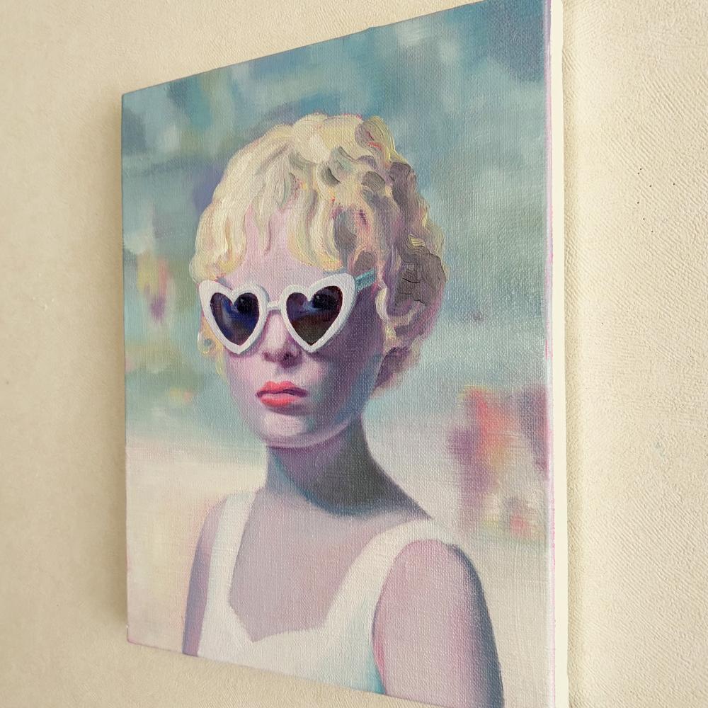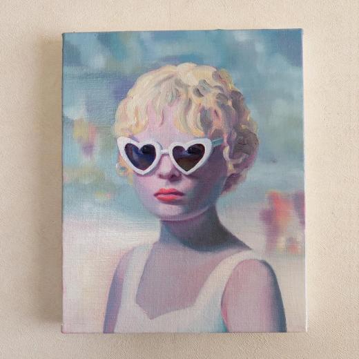 無垢さと大人びたクールな表情が同居したポートレート。まばゆい光と色鮮やかな影が交差して、かつての眩しい夏の日をどこか遠い記憶の風景として描き出しています。