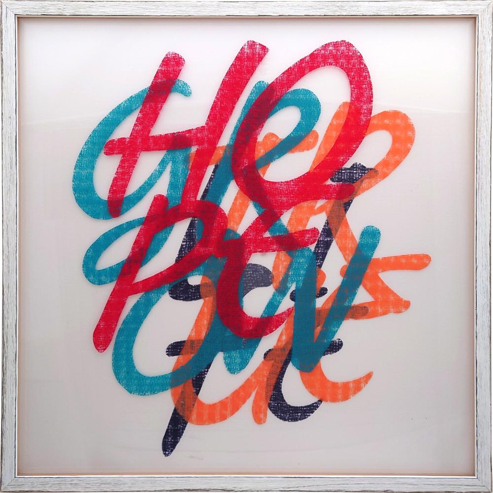 集合体としての言葉が持つ普遍的な意味の裏側に、十人十色の意識がひしめき、一つの価値観に縛られない現実があることを、アクリルを重ねた奥行きの中に描き出します。