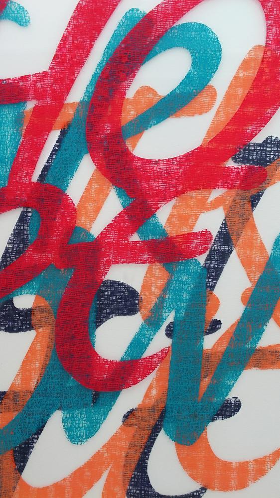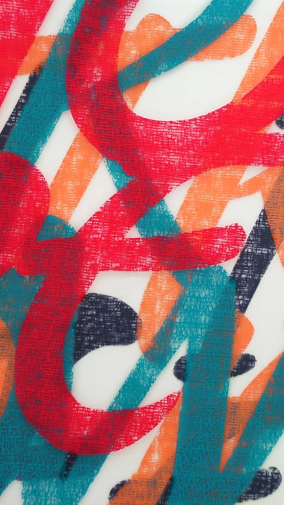 The artist uses layers of acrylic to depict, within the depth of the artwork, the universal meaning inherent in language as a collective entity, yet teeming with diverse individual consciousnesses and a reality not bound by a single set of values.