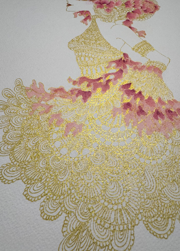 高級水彩紙ボードに金色ピグメントマーカーと