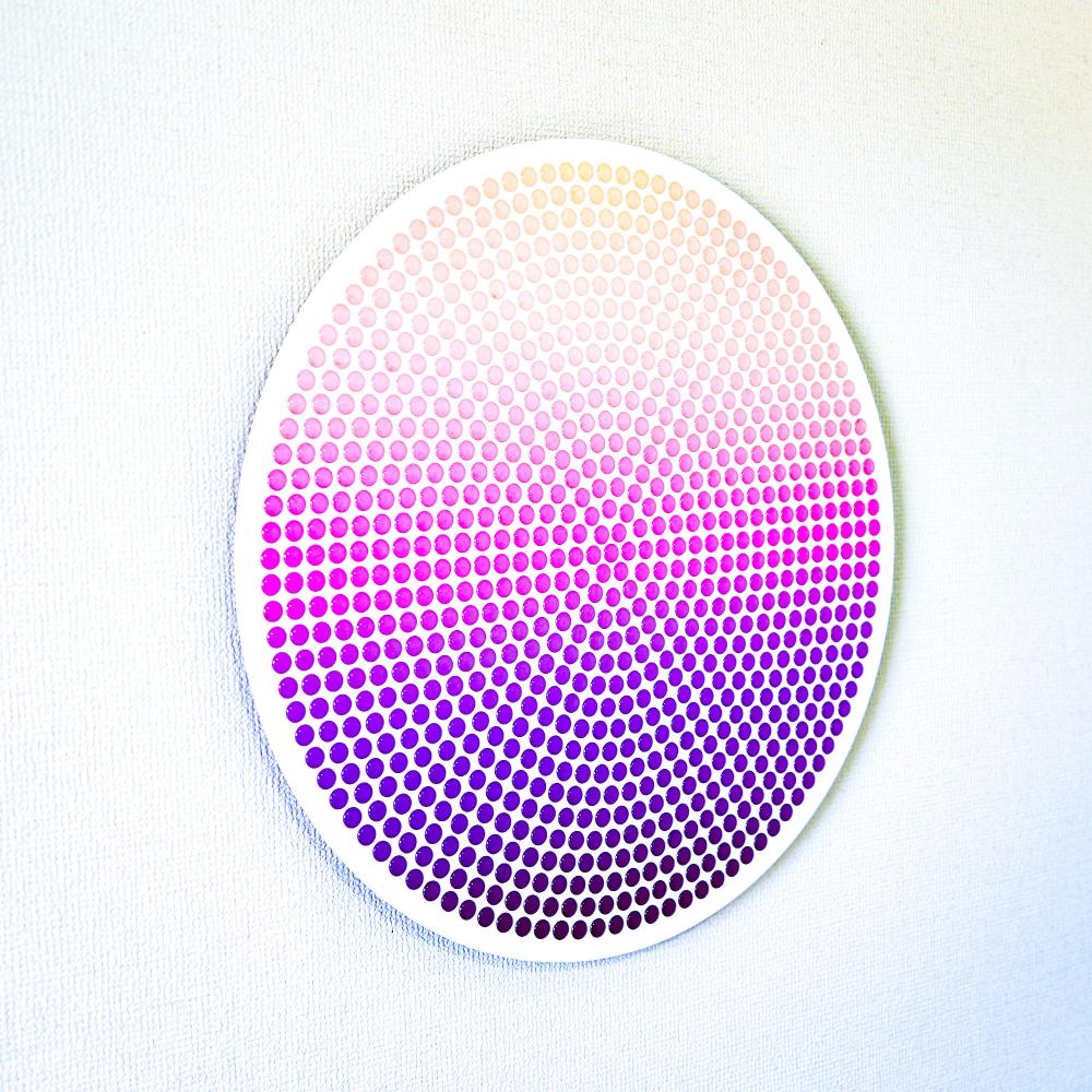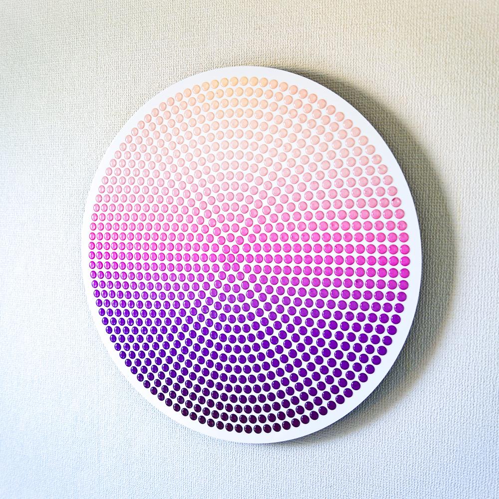 光や角度によって表情を変える滴(Drops)と、それらが集まることでうっすら浮かび上がる一枚絵から、この世のミクロとマクロ双方の役割や関係性、抽象度や解像度による事象の解釈の多義性を表現しました。