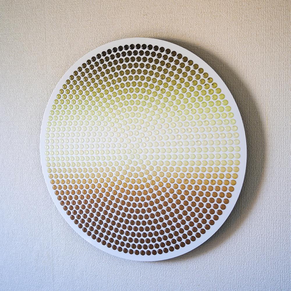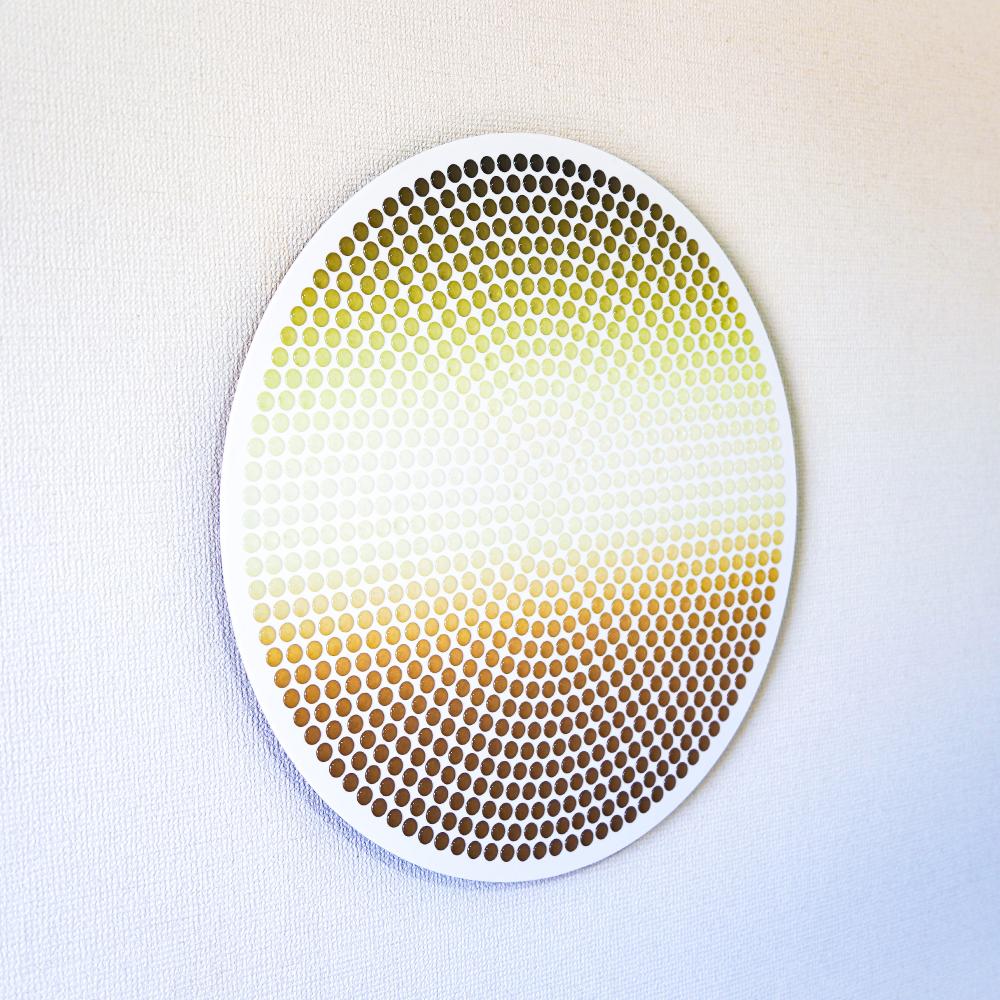 光や角度によって表情を変える滴(Drops)と、それらが集まることでうっすら浮かび上がる一枚絵から、この世のミクロとマクロ双方の役割や関係性、抽象度や解像度による事象の解釈の多義性を表現しました。
