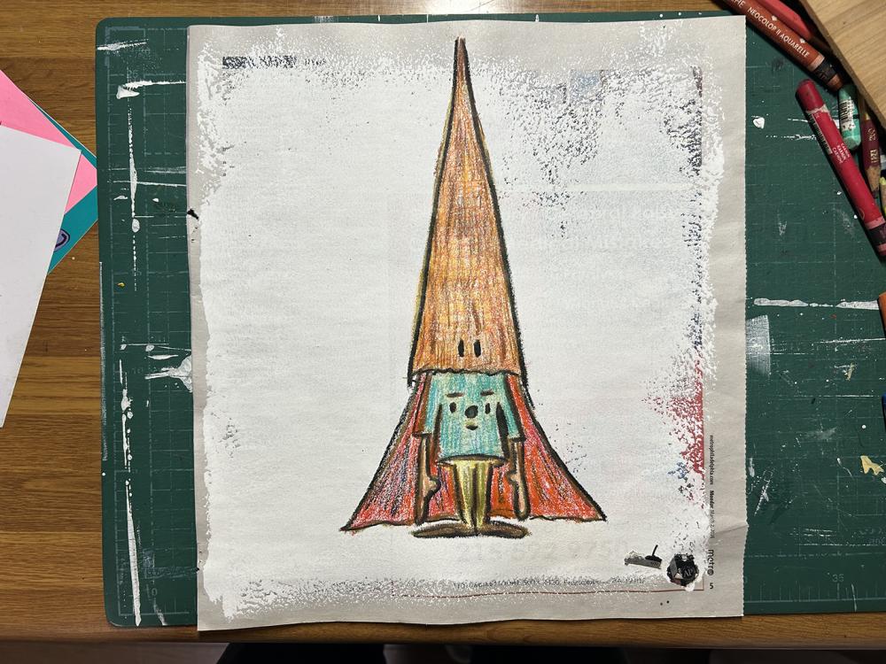 crayon, acrylic paint